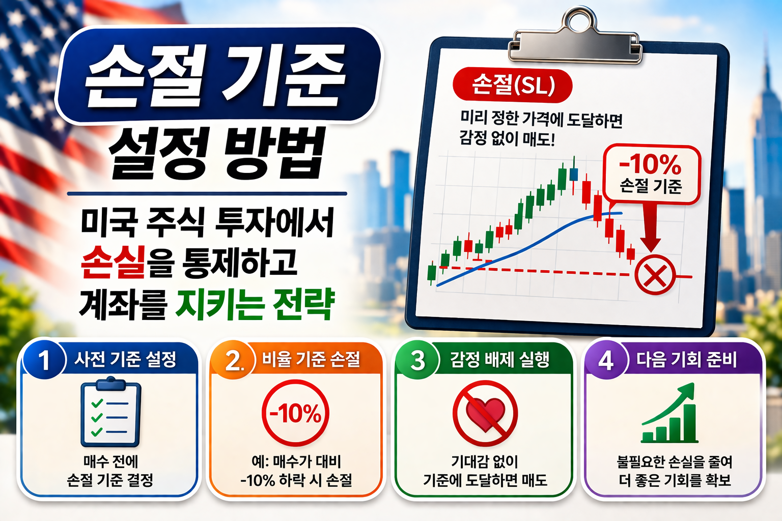 손절은 단순히 손실을 인정하는 행위가 아니라, 리스크를 통제하고 다음 기회를 지키기 위한 전략적 선택이다. 투자에서 중요한 것은 모든 거래에서 이기는 것이 아니라, 큰 손실을 피하면서 장기적으로 살아남는 것이다. 손절은 그 생존 전략의 핵심이다. 많은 투자자들이 손절을 실패하는 이유는 기준이 없기 때문이다. 명확한 기준 없이 감정에 따라 판단하다 보면, 손실을 인정해야 할 시점을 계속 놓치게 된다. 특히 미국 주식 시장은 변동성이 크기 때문에, 기준 없이 버티는 전략은 매우 위험하다.