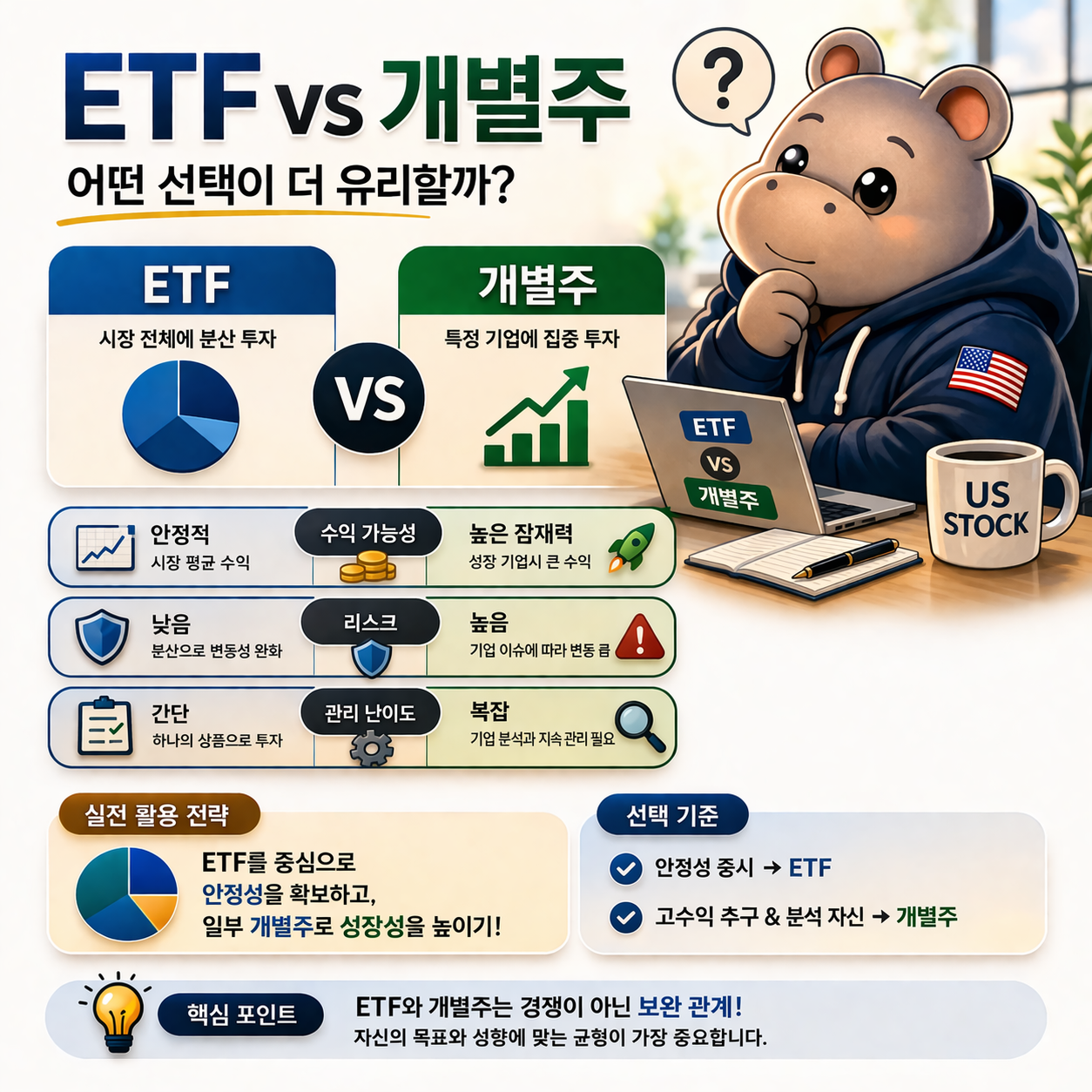 투자는 결국 선택의 문제이지만, 그 선택의 기준이 결과를 결정한다. ETF와 개별주의 차이를 이해하는 것은 그 기준을 만드는 첫걸음이다.